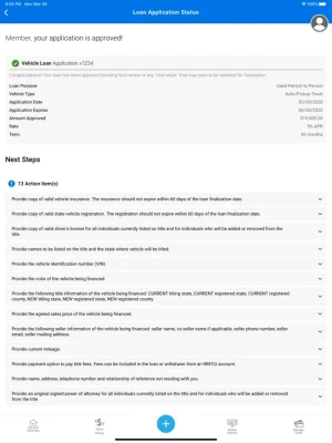 • View your loan application status and check for any outstanding items needed to complete your application