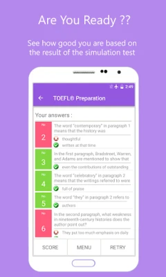 Disclaimer: TOEFL is a registered trademark of Educational Testing Service (ETS) in the United States and other countries. This app is not endorsed or approved by ETS.