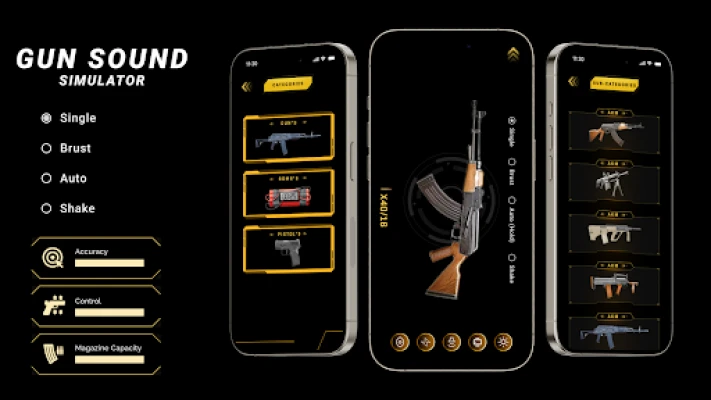 Gun Sounds app features real gun Sounds effects, amazing graphics, and a wide range of guns. Choose pistols, rifles, shotguns, machine guns, and more, each with its own unique sound. Real Gun Sounds App is made to give you the most realistic gun sound experience.