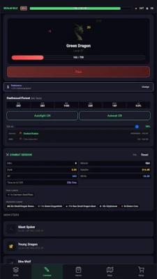 Train combat, collect rare drops, craft/upgrade gear.