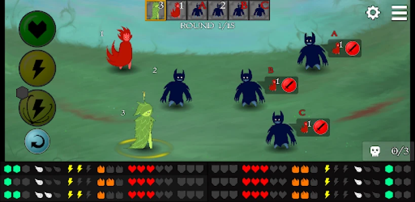 Realm of Spirits is a turn-based combat game where you control a group of spirits in order to defeat enemies. Complete levels and unlock new spirits to your party!