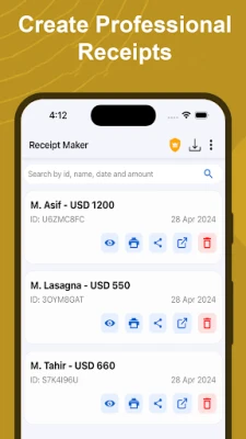 🔍 Easy Search & Retrieval: Can't remember where you stored that important receipt? No problem! Our app lets you search receipts by ID, name, amount, date, and more, so you can quickly find what you need, when you need it.