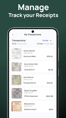 Get receipt scanner to quickly scan receipts and track personal and business accounting. Receipt keeper helps you easily organize receipts on the go. Track and manage receipts including business receipts, expenses and others using receipt tracker. Receipt scanner assist you with OCR to accurately scan receipts for all your records. Receipt scanner auto converts your recipt into expenses by automatically extracting the information from receipt.