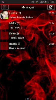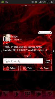 Red smoke theme GO SMS PRO works only with GO SMS Pro application if you don't have it, download for free from Google Play.