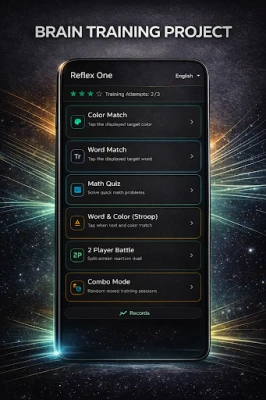 Reflex One is a fast, focused brain training app built to help you practice reaction speed, reflexes, and attention with short, repeatable mini-games.