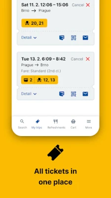 Save your time - easy search of train and bus tickets across Czechia and Europe - fast booking including a seat reservation - free ticket cancellation 15 minutes prior the departure