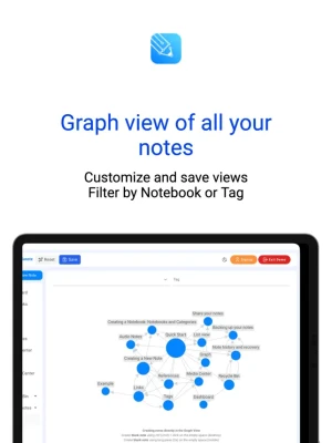 A visual way to discover hidden connections and see the bigger picture of your whole knowledge base. The Graph offers you a bird's eye view of all your notes and how they are connected. If you are utilizing the bi-directional linking organization instead of the hierarchical, the graph is the tool for making sense of your personal knowledge base. The more connected notes, the harder it becomes to find your way. To solve that, Relanote enables you to filter your notes based on tags you used in them.