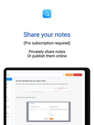 Sharing a public link to one or more notes is 1 click away. No account is required on the other side to view what you shared with them. The notes are accessible on the web only to those, who have the link. You remain in complete control and can revoke or manage the access at any time.
