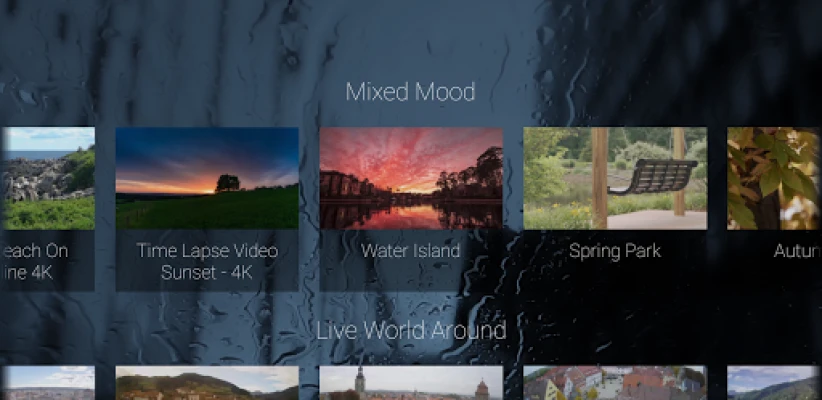 Only high resolution videos and live streams are used. You can use the app as Daydream Screensaver now: open 'Settings' -> ('Display' -only for mobile) -> 'Screensaver' and select 'Relax Window'