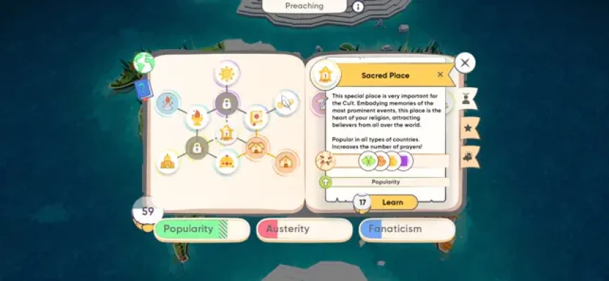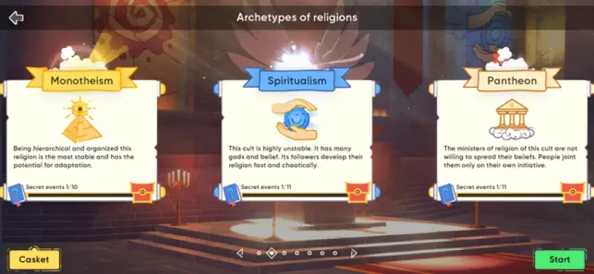 Humanity has always felt an irresistible need to believe in something greater than ourselves. It has sought comfort in the darkness—a light that would illuminate their path through the fog of millennia. For millions of people throughout the ages, this light has been and remains faith. Religion has become the beacon that has allowed many to find meaning in this universe, withstand the storms of change, and reach the shores of happiness. There are many religions in the world, each responding to the challenges of the times and changes in its own way. But how else could this process have unfolded? What other diverse and intricate forms have human beliefs and convictions taken? You can find the answers to these questions in our new game. Create your unique religion. See how well it responds to the challenges of the times and whether it can withstand trials and bring humanity to unity.