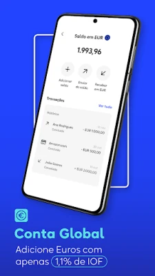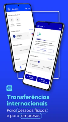 - Transferências internacionais (receber e transferir Dólar Americano, Euro, Libra, Iene, Franco Suíço, Peso Argentino, e muitas outras moedas)