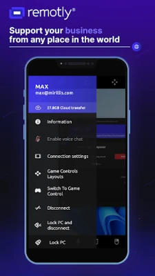 Remotly allows you to share your screen, grant access to your PC, and play games remotely from other PCs or mobile Android devices. And all of this in amazing HD, 4K or even HDR quality (using safe, reliable and secure infrastructure). Download Remotly and start using the best remote access software now.