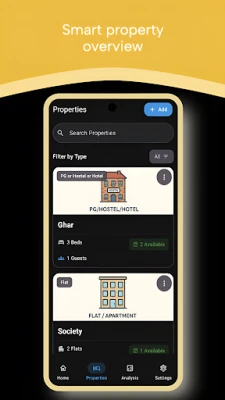 Manage rent, tenants, expenses, PG beds, hostel rooms, flats, shops, and accounts — 100% offline.