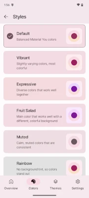 Repainter themes the system-wide Material You color palette, which is used by Google apps and other third-party apps that support Material You. Skins that use their own colors instead of Material You will not have system UI theming.
