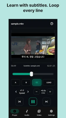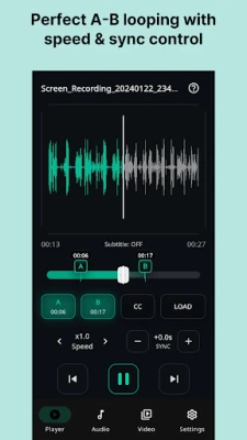 This app helps you repeat specific sections of audio or video using A-B loop playback, making it ideal for shadowing, dictation, pronunciation practice, and focused study.
