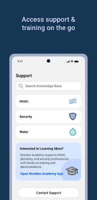 • Easily access tech tips, featured products, training guides, videos, and Resideo Academy