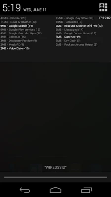 This is a mini resource monitor. It monitors available memory and CPU loading. It will always stay in the corner of your phone's screen.
