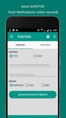 • Send Google Cloud Messaging (GCM) downstream messages i.e. Push Notifications to your registered devices with Firebase Cloud Messaging (FCM) endpoint support.