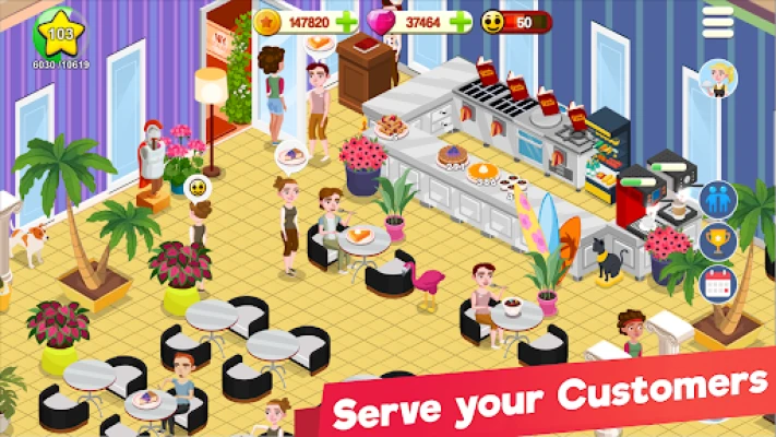 Write your restaurant story and develop amazing cooking by managing your own cafe like restaurant. Buy cooking appliances, tables and chairs, expand your business and restaurant space, decorate and design your cafe, cook delicious food like a real chef, from burgers to pizza or steak, bake tasty cakes and desserts , serve all these to your customers and grow your brand and business to become a restaurant or cafe tycoon.