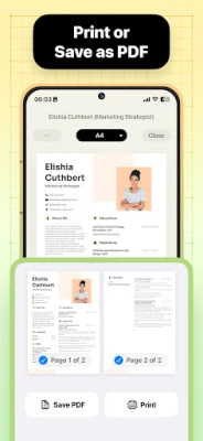 Resume Builder helps creating a impressive and professional resume & curriculum vitae PDF format in minutes. Whether you're a recent graduate or a seasoned professional, our innovative cv maker app is designed to help you craft the perfect resume for job application with a few taps on your mobile devices.