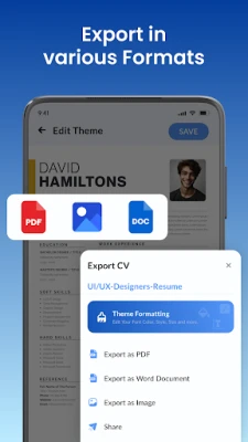 With user-friendly guidance and customizable templates, the app helps job seekers build a resume that stands out to recruiters. You can choose from a variety of resume formats, edit sections, preview your design, and export your resume in PDF or image format for job applications, all without needing internet access.
