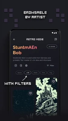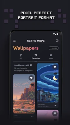 Welcome to the Retro Mode Wallpaper Collection! Be one of the first users to check out this collaborative collection with over 50 mobile wallpapers, hand drawn by 6 unique artists. From gloomy to cozy, from oceans to cityscapes, you'll surely find your next favourite pixel art scene among the diverse styles. π