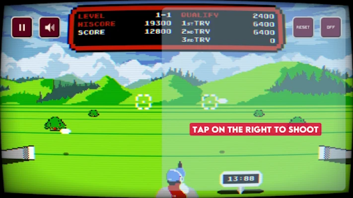 When the clay targets align with the crosshairs, tap on the left or right side of the screen to shoot the corresponding target. Aim to hit as many consecutive targets as possible. If you don't miss, the targets will start moving faster, and more valuable targets will appear.