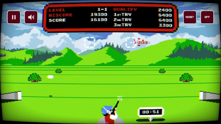 Retro Skeet Shooting is a recreation of the "Skeet Shooting" mini-game from the classic video game "Track & Field."