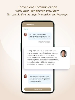 • Text Consultations: Have a question about your medication or some symptoms that are troubling you? Ask your healthcare providers what you need to know. Attach photos or test reports.