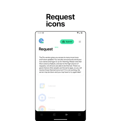 Features 2000 icons Request your own icons Privacy respected No ads forever No tracking Round like Google's Pixel icons Material design Fluid animations throughout the app Matches circular adaptive icons Android 16 compatible Works on old devices too, Android 4.4 and up Icon mask for all icons Dynamic calendar support Categorized icon viewer Intuitive application tool Tablet support Icon request tool Searchable icons
