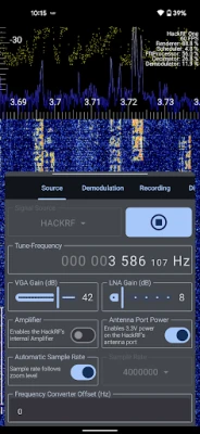 - Note: The RTL-SDR Blog v4 is fully supported when enabling the 'Allow Out-of-Bound Frequency' setting in the app.