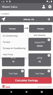 The Rheem Calcu Save mobile app provides on-the-go access for contractors to calculate cost savings for homeowners by comparing residential HVAC system replacement options.