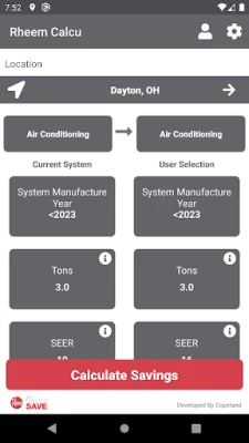 The Rheem Calcu Save app offers up to three replacement system options, which are also compared with current industry minimum standards, for the contractor and the homeowner. This will allow homeowners to more easily choose a replacement HVAC system to meet their particular needs.