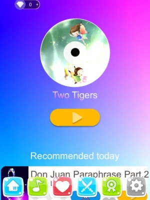 Gaming mode: Don't tap the white tiles! Tap the black tiles according to the melody and don't miss any tile!