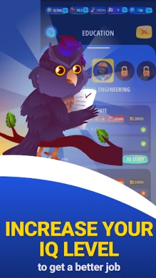 The functionality of the game “Education” gives you the opportunity to learn a new profession or improve your qualifications for subsequent employment in a more paid position.