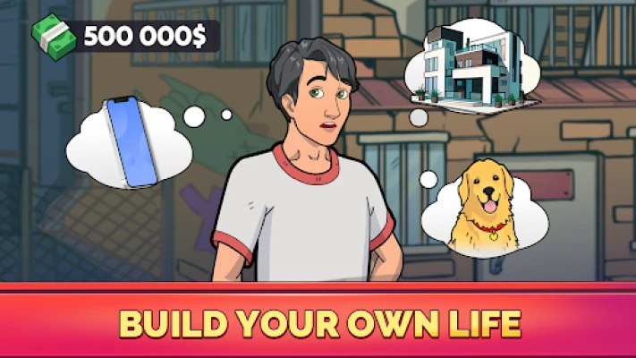 Move from streets to dorms. Then move to a small, but cozy apartment. In the future you will decide between a townhouse, villa or even a private island. Live the second life in luxury simulator!