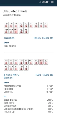Features: • Used for the Japanese variant of Mahjong • Order is irrelevant. The app will rearrange the tiles for you • Determine waits of a tenpai hand • Provides warnings against illegal combinations (e.g. riichi with an open hand) • Calculate points using han and fu as the input • Display terminology in English or romanized Japanese