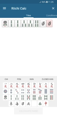 Riichi Calc is an easy to use app that takes any valid Japanese mahjong hand and calculates all possible winning combinations. A great companion for any Japanese mahjong player! Feel free to e-mail me about any calculation errors.