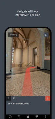 Visit the museum your own way: follow a route or search for the numbers accompanying the works of art. Using interactive floor plans and directions, the app will take you to the start of the area or tour of your choice. During your tour, the app will take you from stop to stop. The blue space shows you where you are at all times. Please do keep your location facilities and Bluetooth switched on for this purpose.