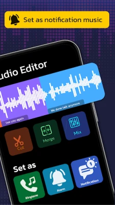 The mp3 cutter feature allows you to select a specific section of a song and edit it to your liking. With a music editor, you can also merge sounds to create unique audio tracks. Whether you want to create a custom ringtone or edit music for a video project, our app has got you covered.