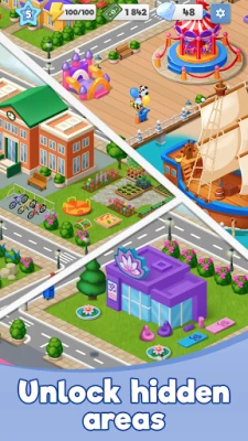 Discover the town's secrets as you unlock the mysterious areas that were destroyed in the earthquake and restore them from the ground up. Gain experience by completing tasks and discovering new items to merge, while leveling up to become Riverside’s master builder. You’ll have so much fun solving Riverside’s many puzzles.