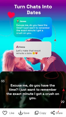 Want something fresh every time? Instantly generate a random pickup line with just one tap—perfect for quick inspiration and spontaneous flirting.