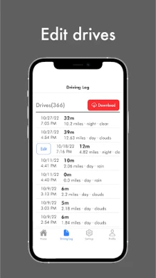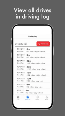 With the click of a button, Road Buddy records the path and length of your drive, weather conditions, and daylight conditions. Easily access a list of all your past drives right in the app. View your amazing progress as a driver and find your total driving hours organized into day and night drives (as required by the DMV).
