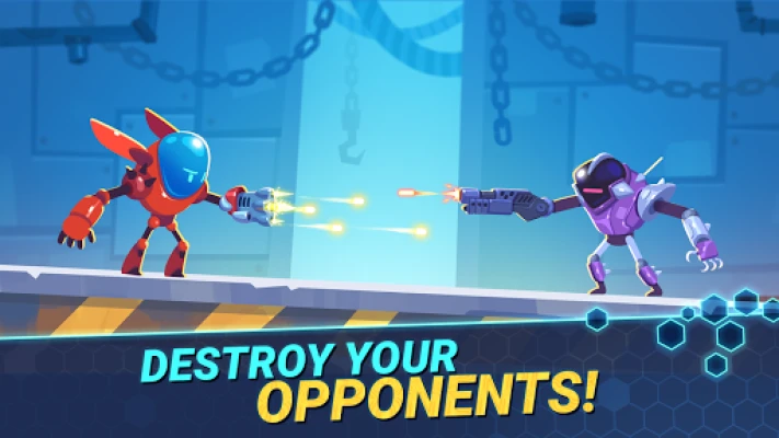 Robo Wars: Robot Battle Mechs is a one of the robot fighting games full of shooting robots and explosions, traps, crates, and boosts! Hide behind the platforms, interact with objects on the arena and learn how to use the traps and boosts in your favor.