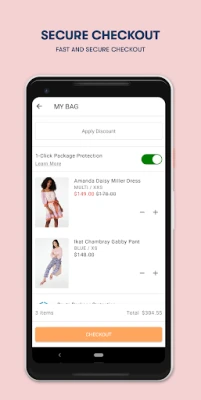 SECURE CHECKOUT IN A FLASH Tap, swipe, shop and secure your new products in an instant with our super easy checkout.