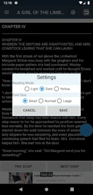 Select from white, yellow pages, or black (dark mode) background and enjoy unlimited reading of love novels.