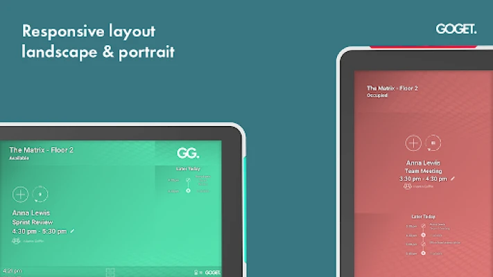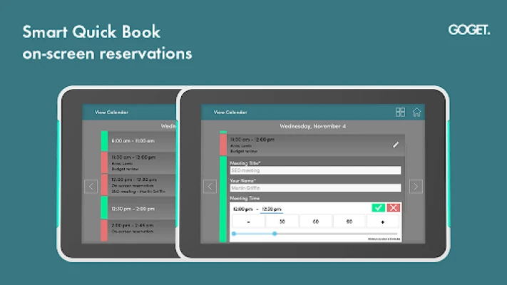 Building on the world’s preferred room scheduling system - Room Display - this all-new generation Room Display 6 takes professional meeting room bookings to an unprecedented level, when it comes to design and features, while still enacting GOGET’s core value of “keeping it simple” for both users and admins.