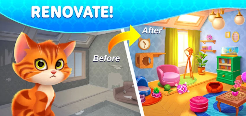 It's a unique merge game that combines the fun and challenging gameplay of merge games with the creativity and satisfaction of design home games. Merge design elements to craft your dream house design while enjoying the engaging mechanics of home makeover games. Embark on a journey of home renovation alongside the Parkers family, and become their trusted house designer. Dive into the world of home decor and immerse yourself in this captivating casual game experience. If you love merge games, design home games, and heartwarming stories, then Room Merge: Home Design is the perfect game for you.