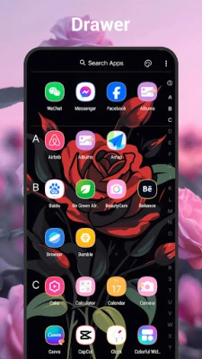 + Rose Launcher has a handy apps drawer, you can list apps with various style, vertical, horizontal, or by sections, you can change drawer background color.