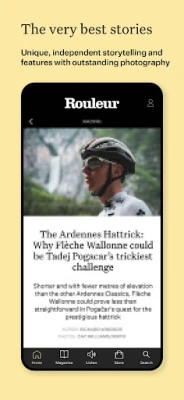 Compelling content - Discover all the greatest stories from the world of cycling in the Rouleur app. We cover racing news, tech, performance, travel and every other corner of the cycling world with our unique lens.